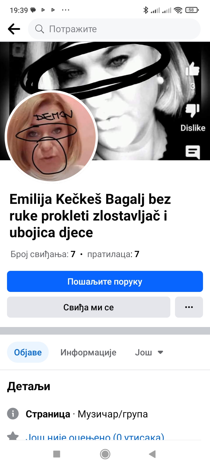 u zadnje vrijeme otvara kanale po društvenim mrežama i piše da sam umrla i pri tom napiše" ha ha